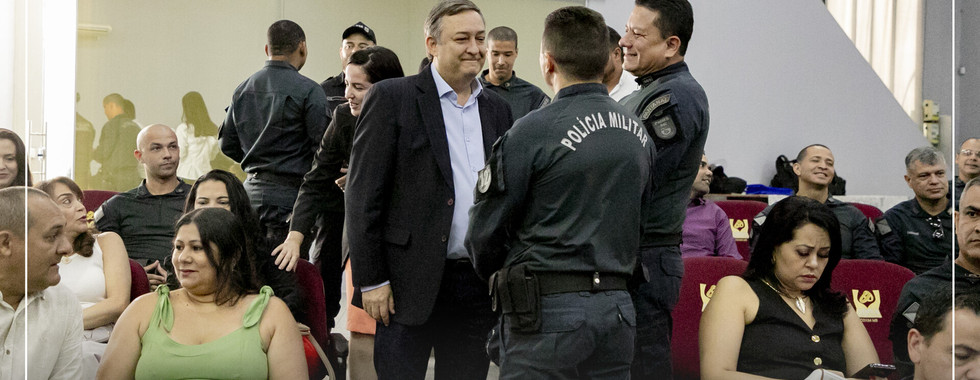 Durante o ato solene, fui convidado a ocupar lugar de destaque para o recebimento da honraria, entregue pelo comando da Polícia Militar como reconhecimento à colaboração institucional e ao fortalecimento das ações integradas entre os municípios e as forças de segurança.